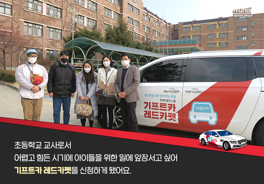 선생님들 모두 좋은 일에 뜻을 모으고 싶다고 말씀하셔서 다 같이 기프트카 레드카펫에 함께 하게 됐어요.