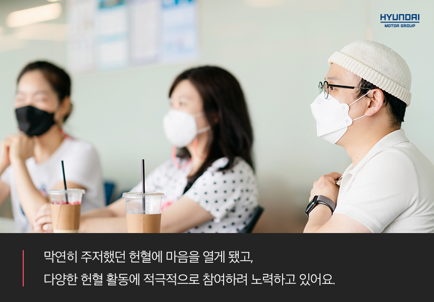 그런데 일단 해보니 정말 간단하고, 많은 사람들이 적극적으로 참여하면 좋겠다는 생각이 들더라고요. 지금 당장 “헌혈하실래요?”라고 물어봐도 흔쾌히 고개를 끄덕일 수 있을 만큼 헌혈에 열린 마음을 갖게 됐죠.