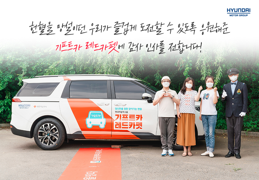 A. 이현아 님 : 제게 헌혈은 미루고 싶은 숙제 같았는데, 기프트카를 타고 멤버들과 함께하니 행복한 이벤트처럼 느껴져요. 사실 아직도 바늘이 무섭긴 하지만 '5분이면 끝나니까' 하며 긍정적으로 생각하게 됐죠.