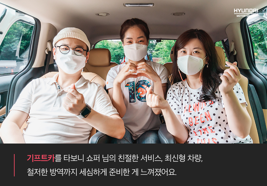 A. 이현아 님 : 단순히 차량만 제공하는 것이 아니라 깔끔한 정장 차림의 쇼퍼님이 친절하게 차 문을 열어주시니 심쿵했죠. (웃음) 또 차 안에 손 소독제, 물, 간식거리 등이 준비된 것을 보고 ‘세심하게 준비하셨구나’하는 생각이 들었어요.