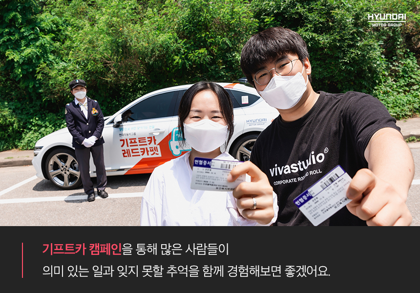 오랜 우정을 쌓아온 두 사람은 잊지 못할 추억을 선물해준 기프트카 캠페인에 감사 인사를 전했는데요. 이번 캠페인을 계기로 헌혈을 망설이셨던 분들이 용기를 내셨으면 좋겠다는 응원의 메시지도 빠뜨리지 않았습니다. 기프트카 레드카펫은 헌혈 영웅들의 따뜻한 응원을 동력 삼아 오늘도 여러분을 찾아가겠습니다!