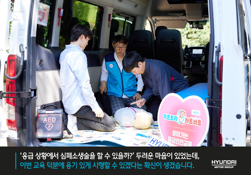 Q. 기프트카 하트비트 차량에서 응급 안전 교육을 받아보신 소감도 궁금합니다.